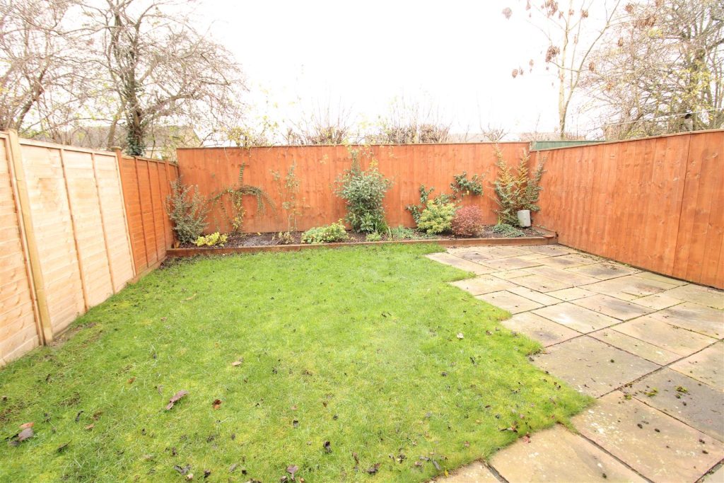 The rear garden is enclosed and is a private space with a paved patio seating area and lawn with established plants and shrubs to the borders.