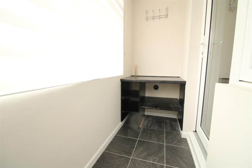 The UPVC door opens into the convenient vestibule which has a tile effect laminate floor and benefits from built-in storage shelves. There is an internal UPVC glazed door which opens into the kitchen/diner.