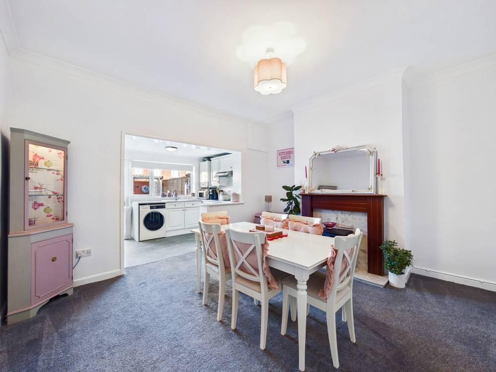Access to the dining room. Carpeted throughout. Central heated radiator. UPVC double glazed window to the front aspect.